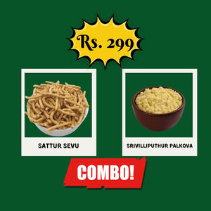 Sevu & Palkova: Relish the crispy Sattur Sevu (0.25 kg), alongside the creamy, melt-in-your-mouth Palkova (0.25 kg), crafted from fresh milk.