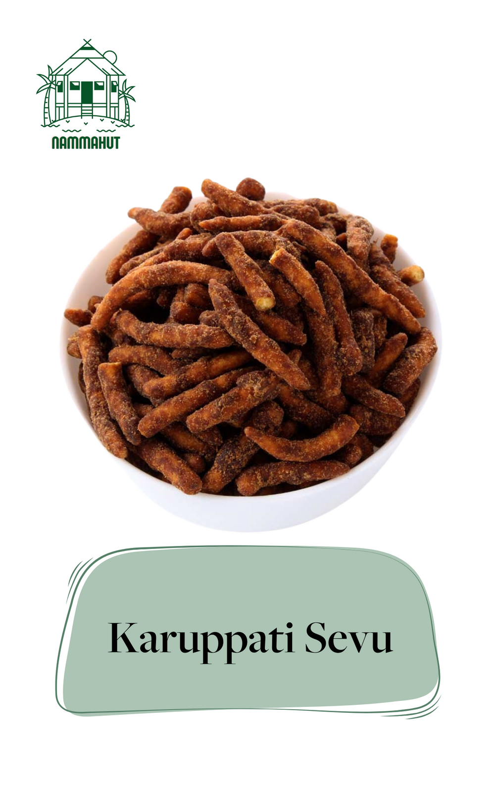 - Elevate your snacking experience and indulge in the unique flavor of NammaHut's Karuppati Sevu, the perfect blend of tradition and taste