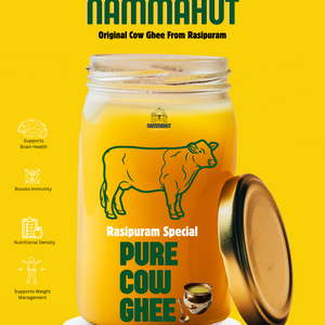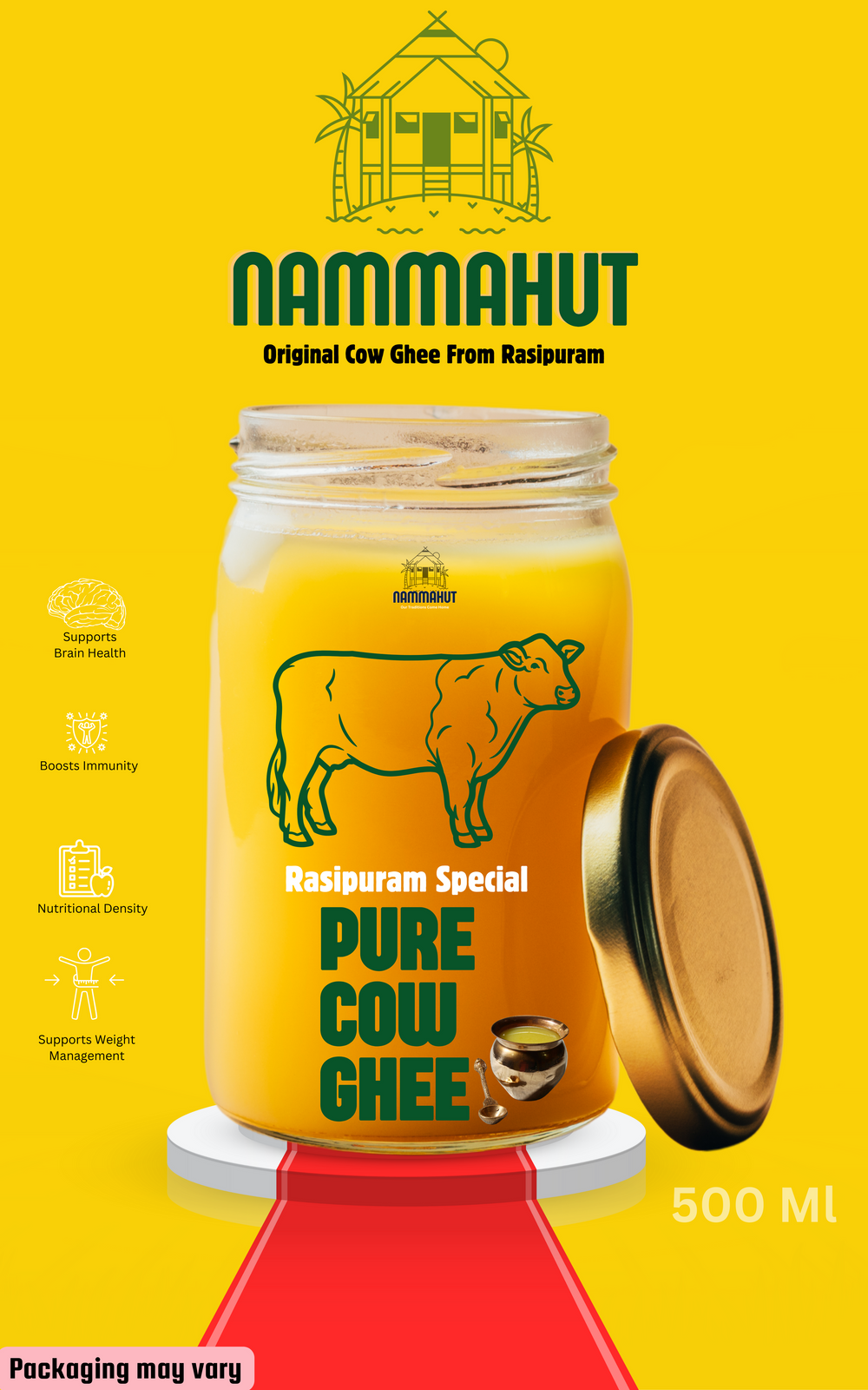 NAMMA HUT - Pure Cow Ghee - Rasipuram Special (500ml) Embrace the heritage - Sourced directly from the heart of Rasipuram, renowned for its generations-old ghee-making tradition. Made with 100%