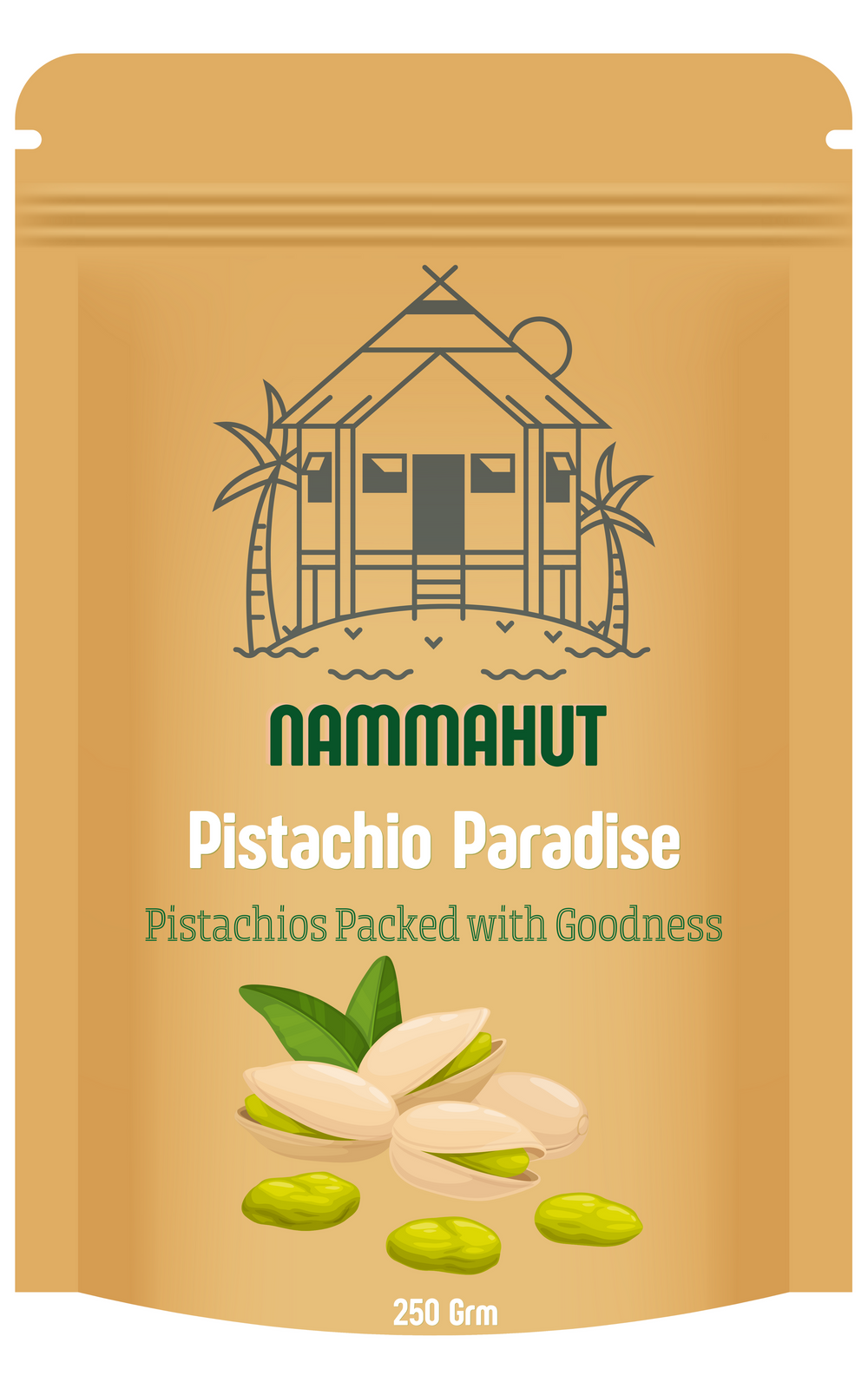 NAMMA HUT - Pistachio Paradise (250 gm) Pistachios packed with Goodness - Unleash a symphony of flavor with the finest pistachios, offering an unparalleled taste experience. We hand-select only the